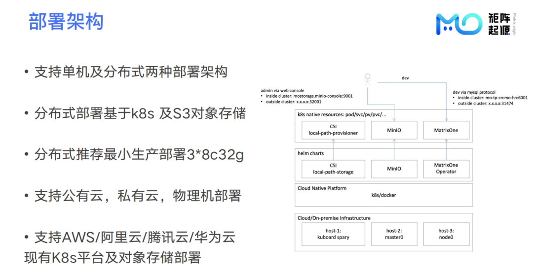 面向云设计:MatrixOne Cloud 与云上各类成熟组件(如 K8s、S3 等)无缝集成。