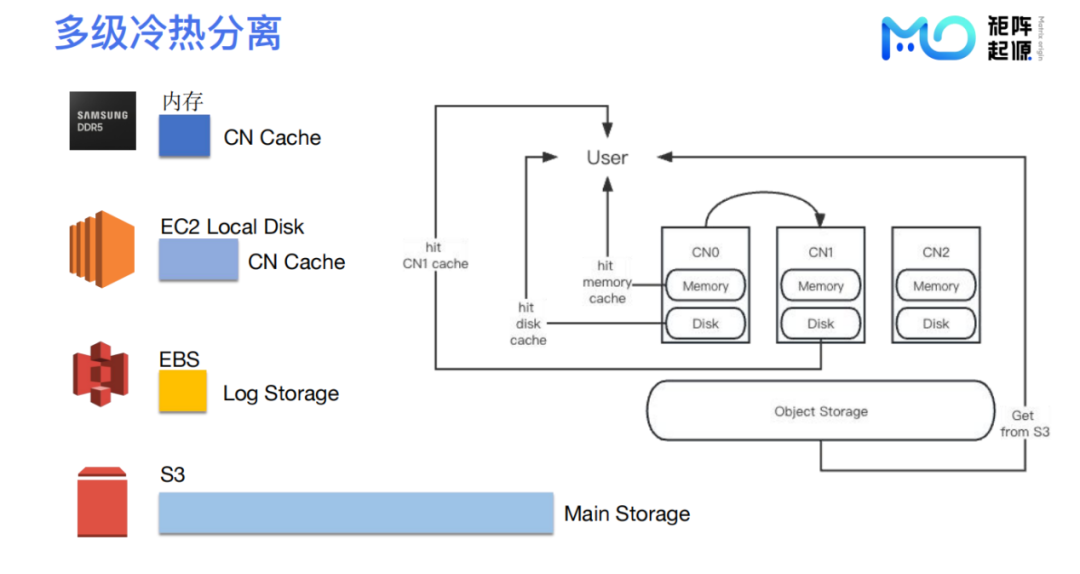 此外,MatrixOne 还实现了存储层面的多级冷热分离,以适应云上架构特点。