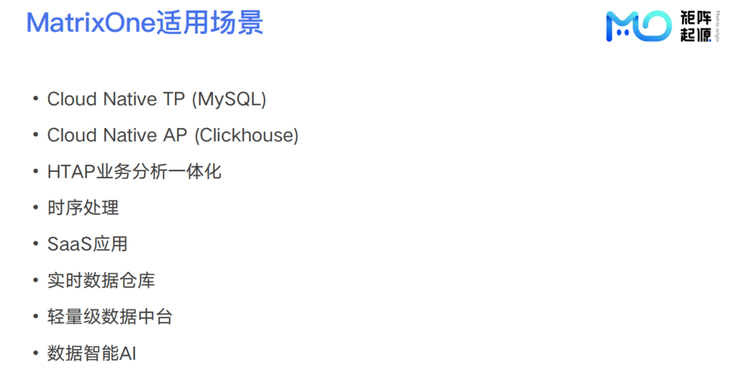 接下来,简要总结一下 MatrixOne 适用于哪些场景。