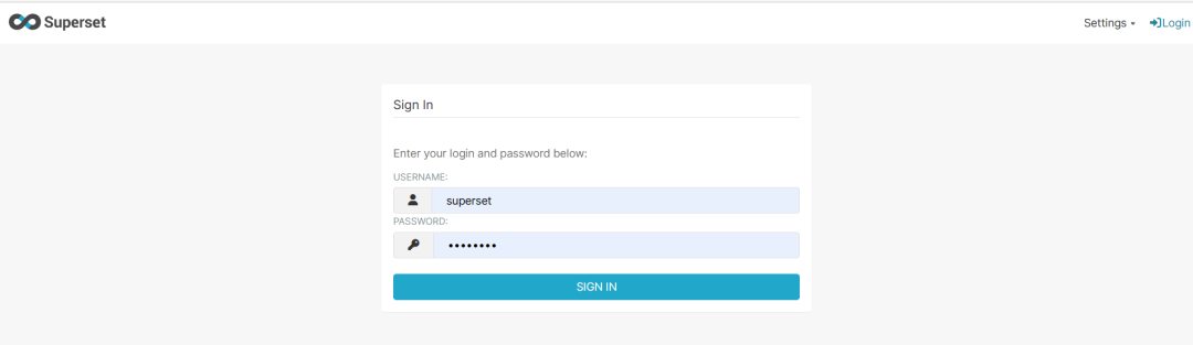 通常是 http://ip:8080,然后输入您的用户名和密码,登录 Superset。