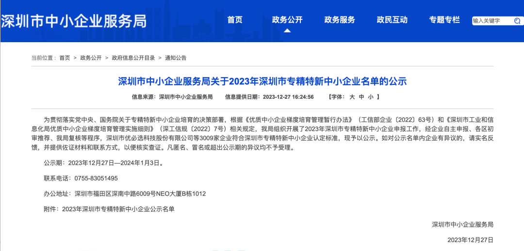 新年伊始,深圳市中小企业服务局公布的《2023年专精特新中小企业》名单公示期结束,矩阵起源(深圳)信息科技有限公司榜上有名,凭借技术研发、产品创新成功通过“专精特新”评审认定,荣获“深圳市专精特新中小企业”称号!这标志着公司在“专精特新”发展规划道路上取得重大突破!