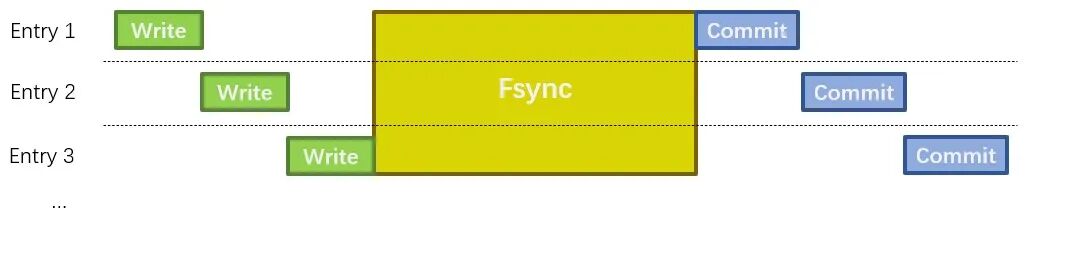Truncate(lsn Lsn) errorPart 4 Group Commit Group Commit可以加速持久化log entry。持久化log entry涉及到IO,非常耗时,经常是提交的瓶颈。为了降低延迟,批量向Log Backend中写入log entry。比如,在文件系统中fsync耗时很久。如果每条entry都fsync,会耗费大量时间。基于文件系统的Log Backend中,多个entry写完后统一只做一次fsync,这些entry刷盘的时间成本之和近似一条entry刷盘的时间。 Log Service中支持并发写入,各条entry刷盘的时间可以重叠,这也能缩短写entry的总时间,提高了提交的并发。