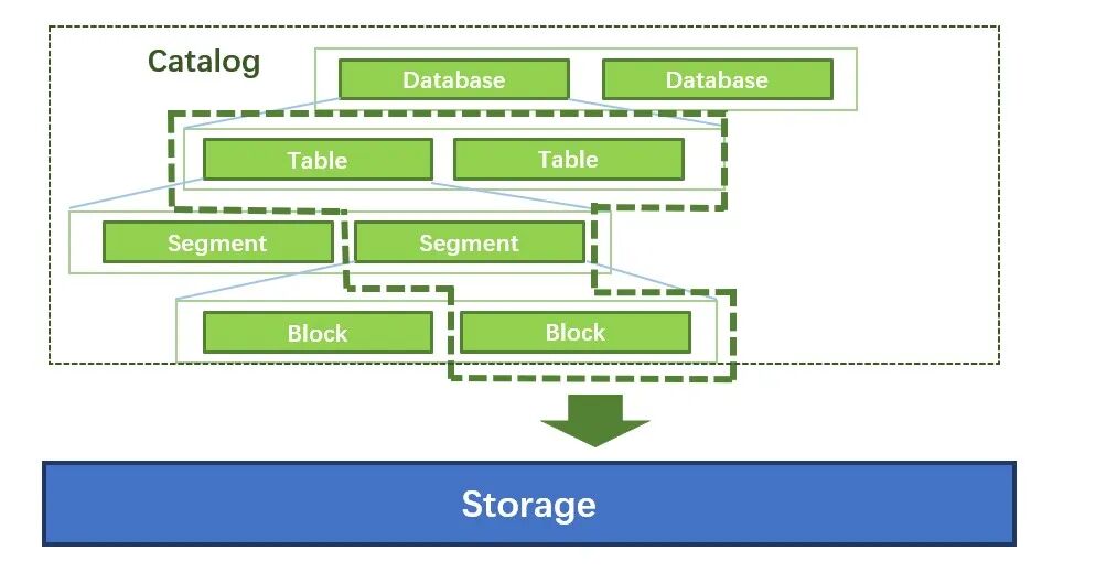 >>>Commands 1. Update Catalog Catalog从上到下每层分别是database,table,segment和block。一条Updata Catalog Command对应一条Catalog Entry。每次ddl或者跟新元数据对应一条Update Catalog Command。Update Catalog Command包含Dest和EntryNode。 Dest- Dest是这条Command作用的位置,记录了对应结点和他的祖先结点的id。重启的时候会通过Dest,在Catalog上定位到操作的位置。 Type Dest Update Database database id Update Table database id、table id Update Segment database id、table id、 segment id Update Block database id、table id、 segment id、block id EntryNode 每个EntryNode都记录了entry的创建时间和删除时间。如果entry没被删除,删除时间为0。如果当前事务正在创建或者删除,对应的时间为UncommitTS。 对于segment和block,Entry Node还记录了metaLoc,deltaLoc,分别是数据和删除记录在S3上的地址。 对于table,Entry Node还记录了表结构schema。 2. Append Append Command中记录了插入的数据和和这些数据的位置。+-------------------+| Update Catalog |+-------+-----------+| Dest | EntryNode |+-------+-----------++-------------------+| Entry Node |+---------+---------+| Create@ | Delete@ |+---------+---------+ +----------------------------------------+ | Entry Node | +---------+---------+---------+----------+ | Create@ | Delete@ | metaLoc | deltaLoc | +---------+---------+---------+----------+ +----------------------------+ | Entry Node | +---------+---------+--------+ | Create@ | Delete@ | schema | +---------+---------+--------++-------------------------------------------+| Append Command |+--------------+--------------+- -+-------+| AppendInfo-1 | AppendInfo-2 | ... | Batch |+--------------+--------------+- -+-------+