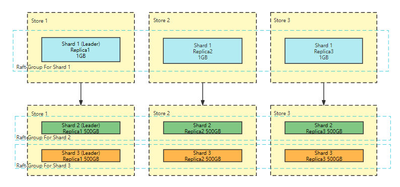 Replica:为了保证存储服务的高可用,每个Shard的数据是存储多份的,并且分布在不同的Store上,Shard的一个数据副本我们称之为一个Replica。所以一个Shard会包含多个Replica,每个Replica中的数据都是一样的。