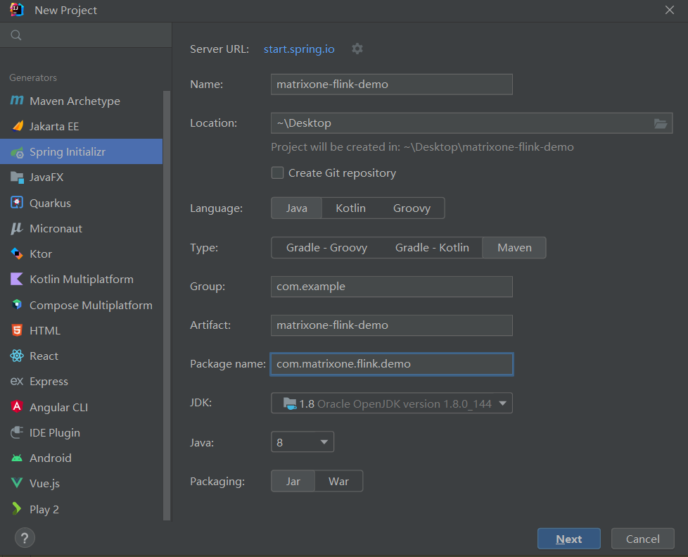 1. 启动 IDEA,点击 File > New > Project,选择 Spring Initializer,并填写以下配置参数: